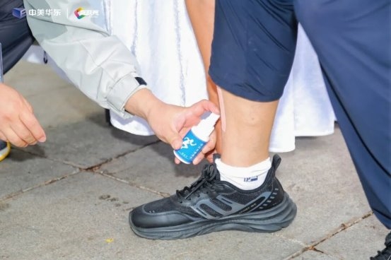 中美华东®伤科灵喷雾剂作为本次赛事指定防护产品,根植于传统苗药文化,选用天然草药成分,具有活血化瘀、消肿止痛的功效。无论是在赛前预防、赛中应急处理还是赛后恢复环节,伤科灵都将为跑者提供专业、及时的健康守护,助力每一位选手无忧奔跑,尽情享受运动带来的快乐。